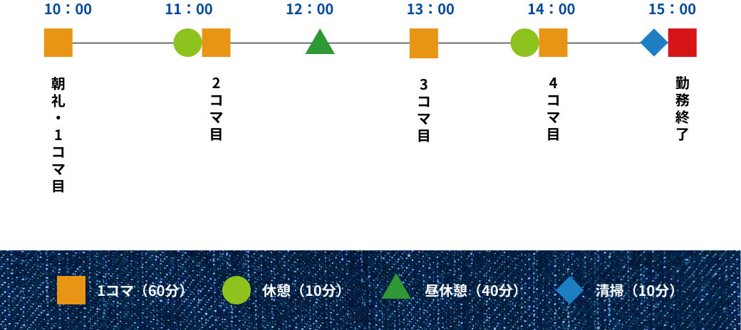 1日の実際の作業を体験していただき、業務の内容や職場の雰囲気を確かめていただきます。